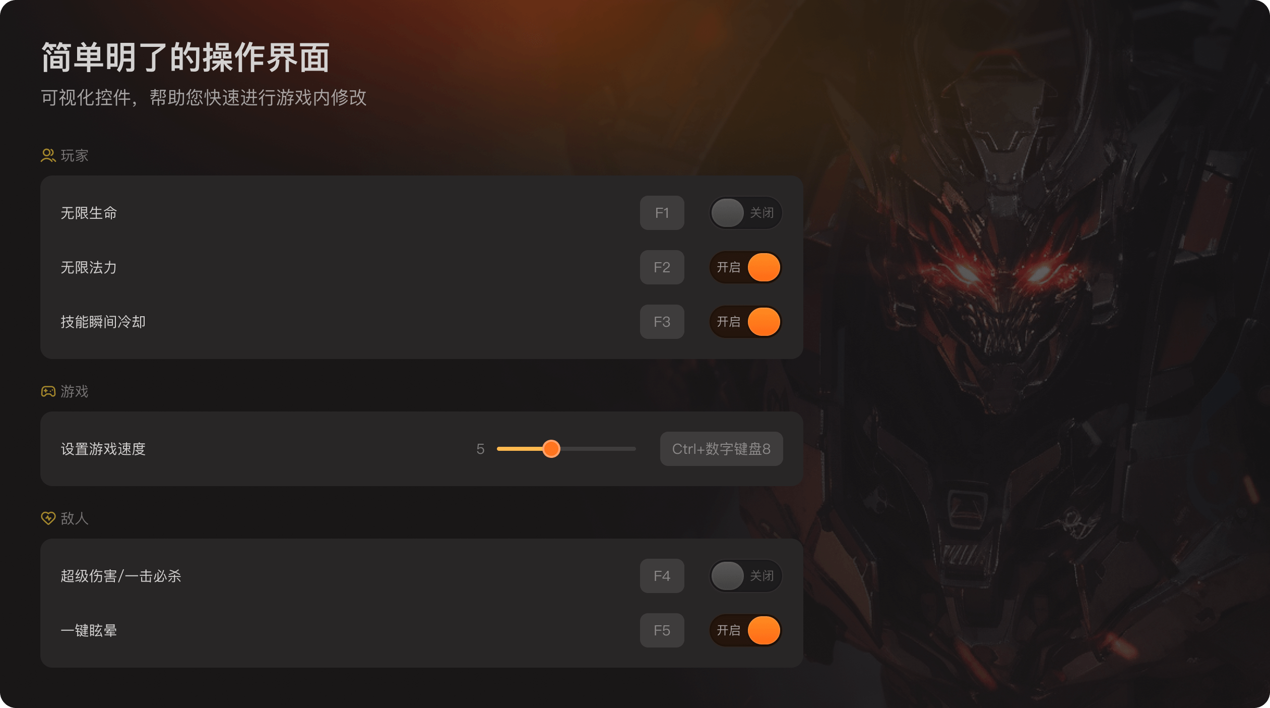 1.勾选框:如果功能旁边有一个勾选框,只需勾选该框即可启用相应功能。例如,如果有“无限生命”功能,勾选该框后,进入游戏角色的生命值将不会减少。